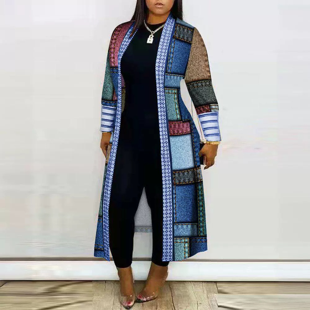 2023欧米の婦人服アマゾンの爆発金は欧米のカウボーイのプリントをまねて色のカーディガンのコートにぶつかります。