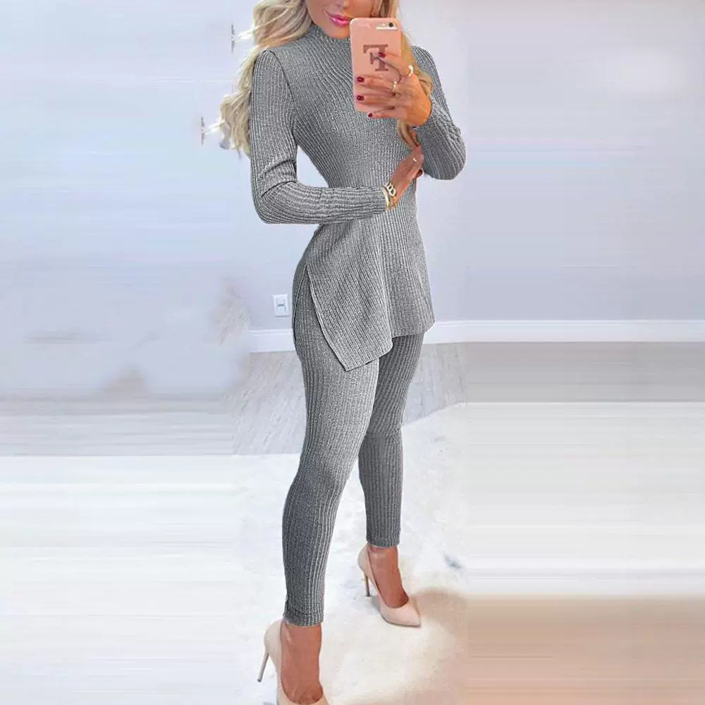 2022春の新型欧米のクロスボーダー婦人服のニットスーツ、スリットの中の長い上着のタイツのズボン