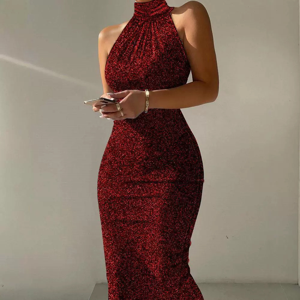 新商品の現物2023欧米の修身婦人服春メリヤス銀線ノースリーブタイトスカート