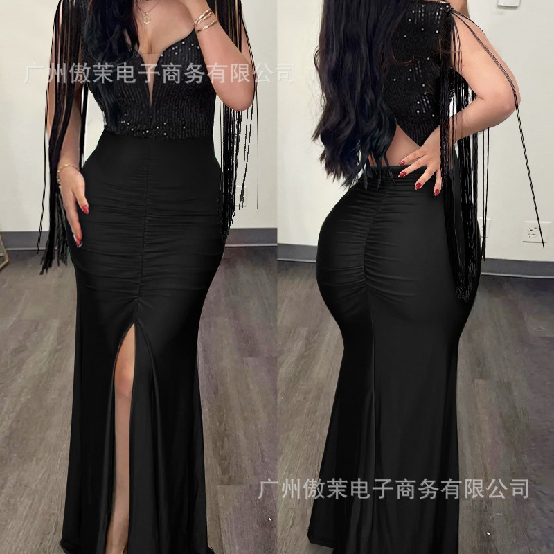 2023新型現物アマゾンrの人気スパンコールはベルベットのガードルワンピースをつなぎ合わせた