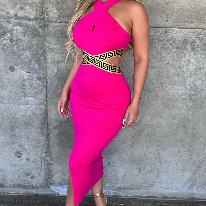 2023新型アマゾン速売通の赤いセクシーなハスの葉の縁の高いフォークのストラップの長いスカート