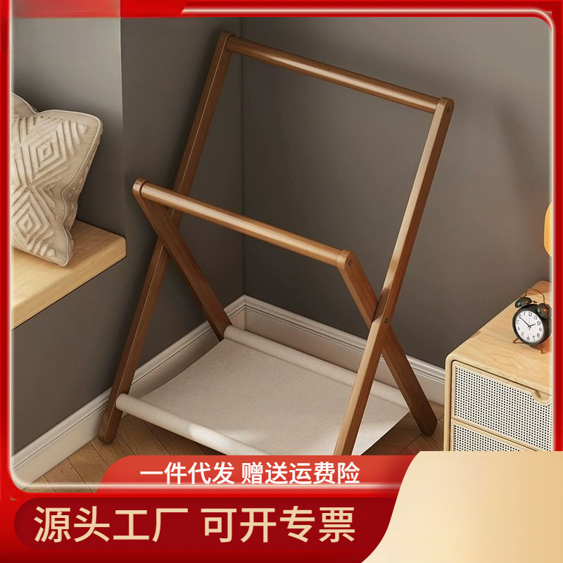 ベッドサイドコートラック床置き折りたたみ小型無垢材寝室夜の睡眠一時的な衣類収納北欧洋服ラック