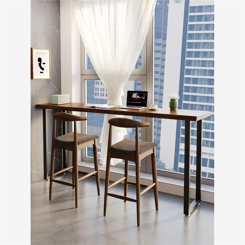 無垢材のバーテーブルと椅子の組み合わせ、シンプルな小さな家庭用バルコニー仕切りロングテーブルミルクティーショップバーハイテーブル