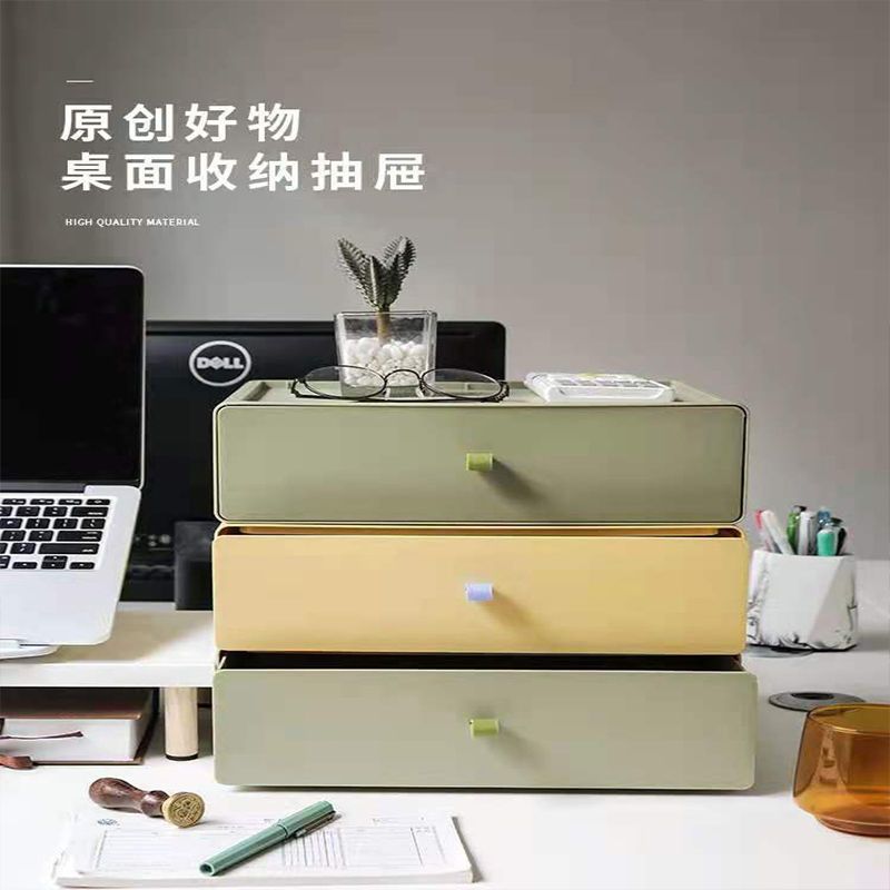 クリーム色のデスクトップ収納ボックス引き出し式防塵積み重ね可能なオフィスA4用紙ファイル雑貨収納ラック