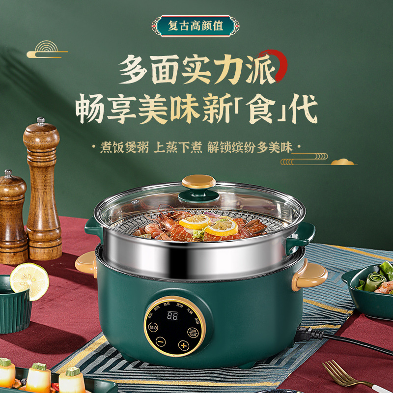 電気調理器、寮生用鍋、家庭用小型電気調理器、多機能蒸し、揚げ、炒め、一体型麺調理鍋、電気鍋