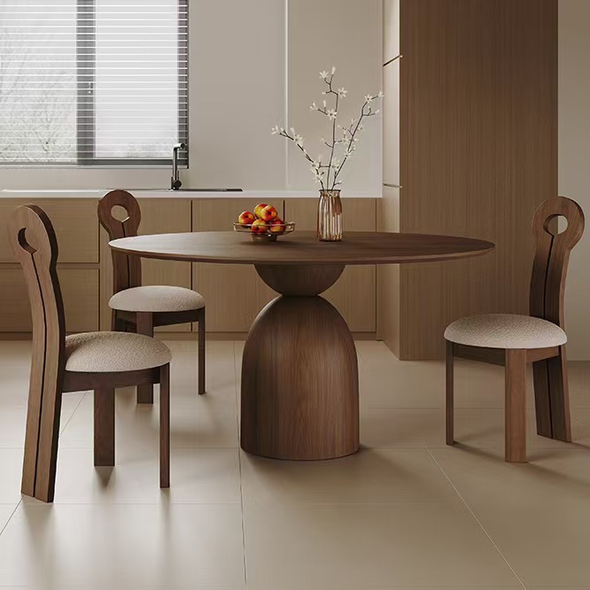 中古風実木円形食卓回転盤フランスレトロ胡桃色円卓家庭用小戸型デザイナー食卓