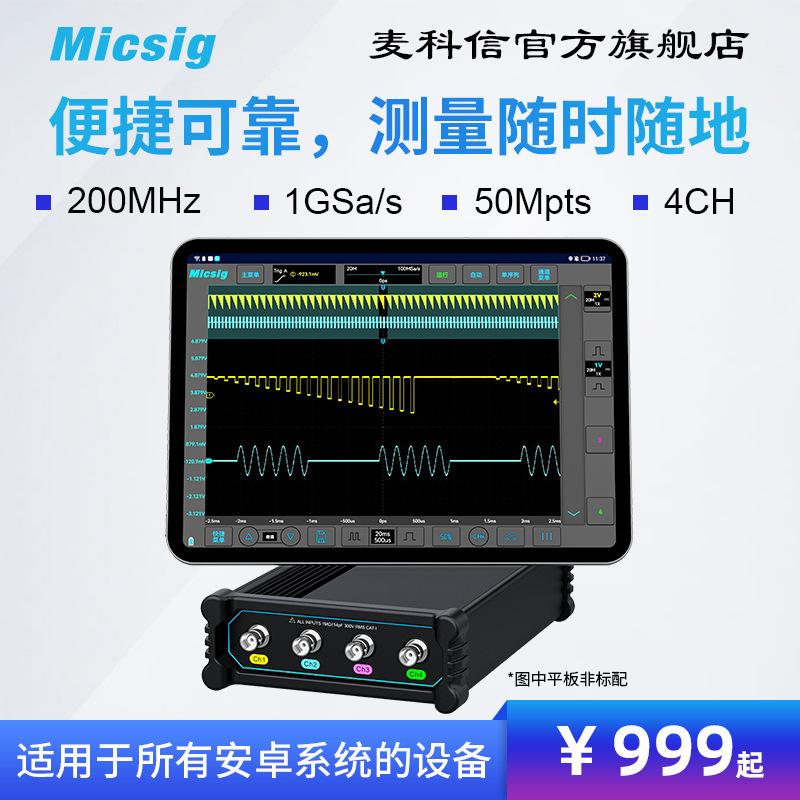 Micsig オシロスコープ ポータブル USB 仮想オシロスコープ 200M 帯域幅はすべての Android デバイスに接続可能