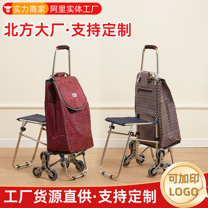 食料品ショッピングカート広告ギフトポータブルトロリートロリー高齢者スーパーマーケットショッピングトレーラー印刷可能なロゴ