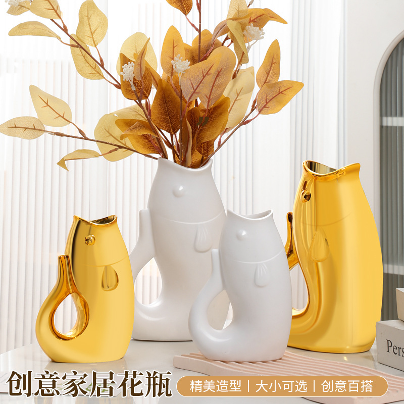オフィス用プラスチック花瓶は陶磁器の魚の形に似せています。