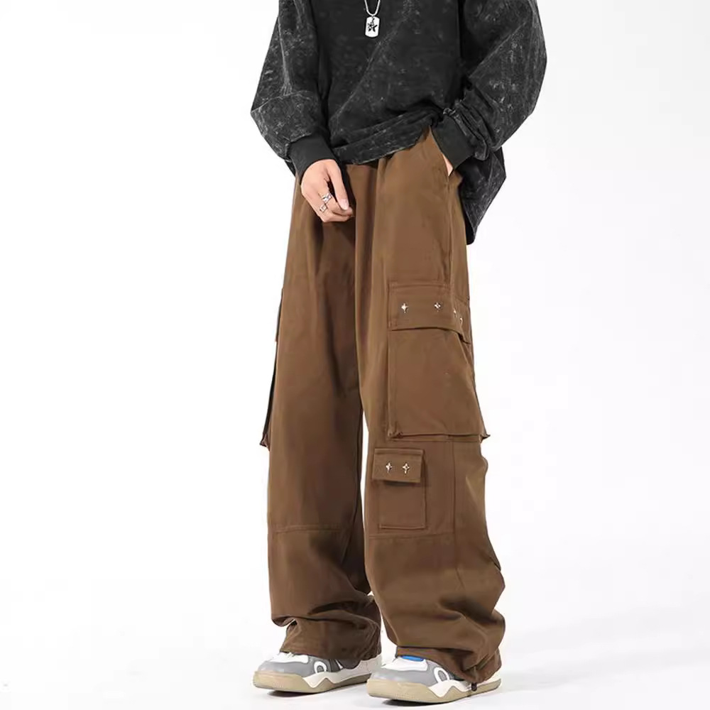 工装ズボン男性ファッションブランドのゆるいストレート新型多ポケット青少年ズボン男性カジュアルパンツ春夏モデル