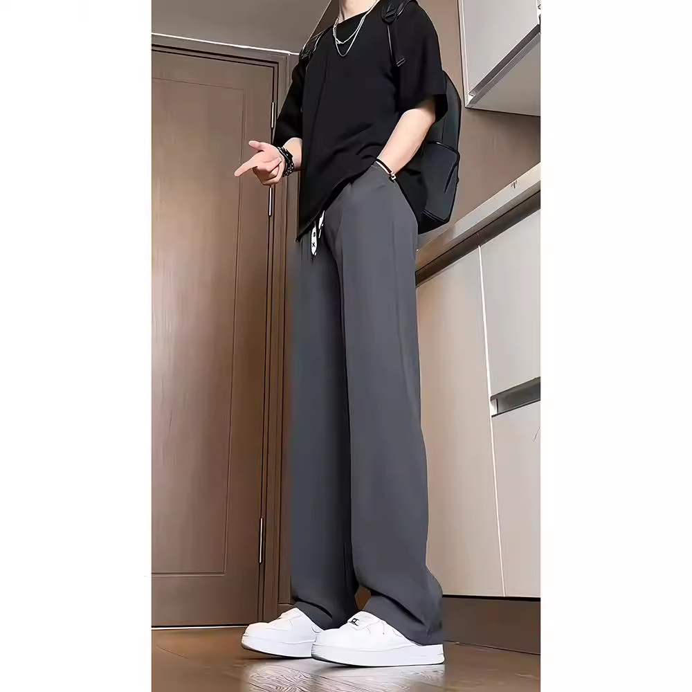 氷糸速乾ズボン男性夏の薄いストレートのゆったりした広脚ズボンのペンダント感がゆるい速乾カジュアルパンツ