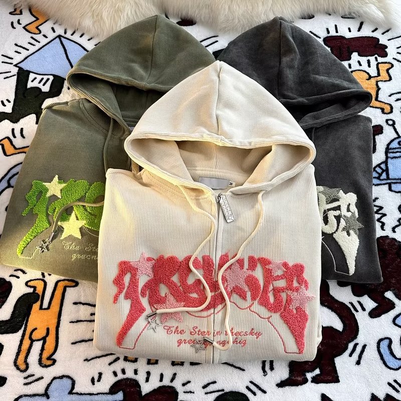 アメリカのジッパーのパーカーのカップルの秋冬のコートの高い街は新型のファッションのブランドの復古の街頭のゆったりしているフードを合わせます。
