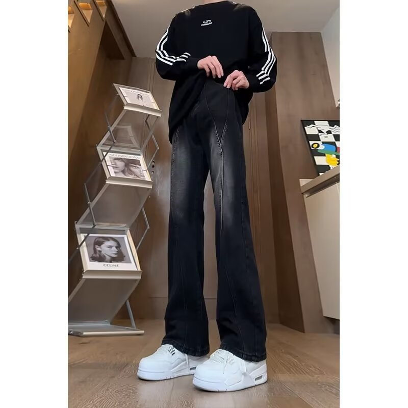 黒灰色グラデーションジーンズ男性アメリカ式ワイド脚垂れ下がっているズボンのアップグレード版型直筒工装修身パンツ
