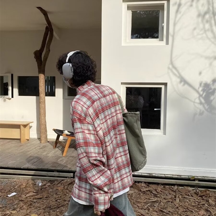 アメリカのレトロな格子のシャツの男性と春秋の新型のゆったりしていてカジュアルで怠惰な風の長袖のシャツの百合のコートの上着
