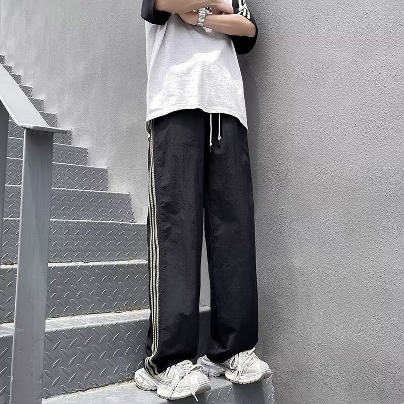 ストレート速乾運動突撃ズボン男型夏2024新型アメリカ復古三条棒縞ズボンレジャー