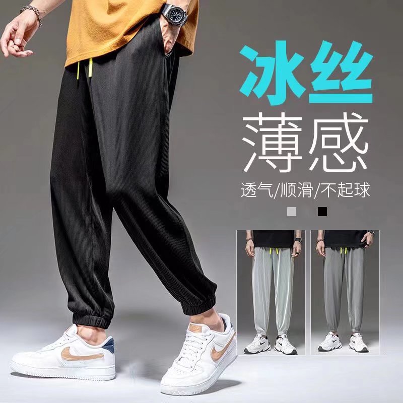 氷糸網眼清涼通気スポーツパンツ男性速乾ズボン夏の薄い若者のゆるいカジュアルパンツ