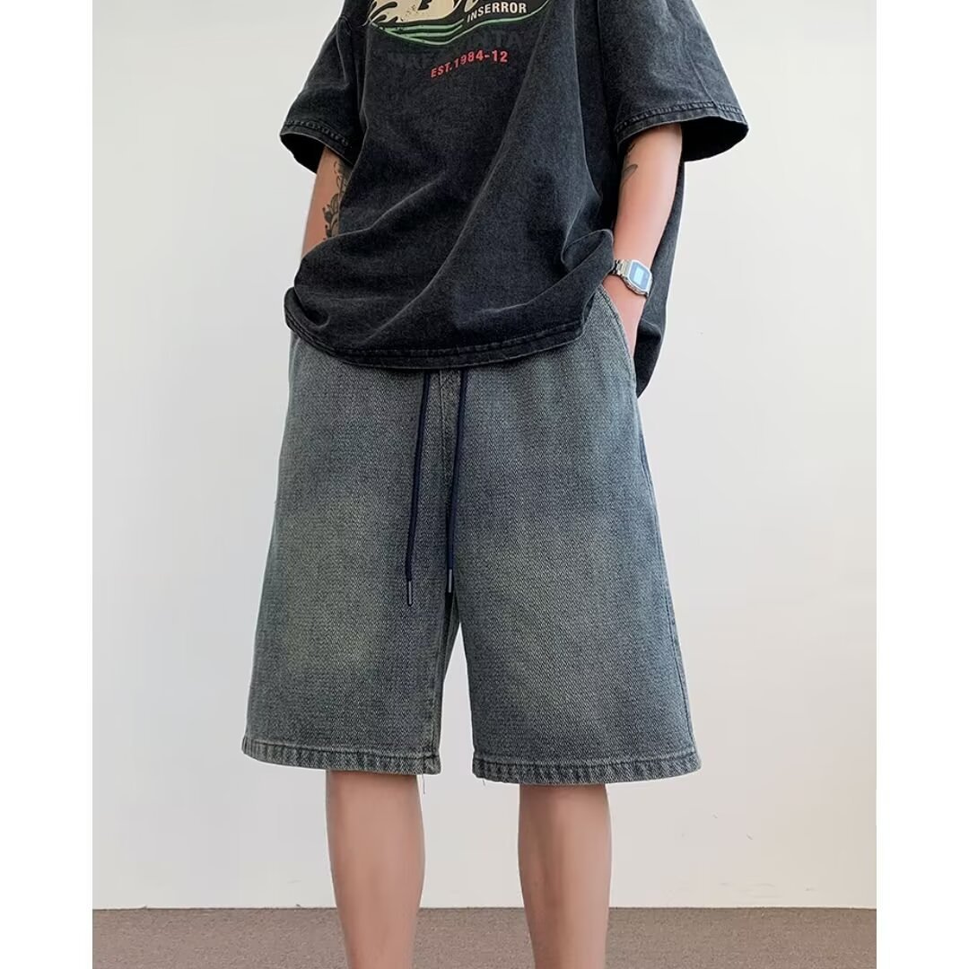 アメリカの縄張り星空の薄いデニムの半ズボンの夏のストレートのゆったりしている中ズボンの5分の高街のズボンのファッションのブランドの男性の金
