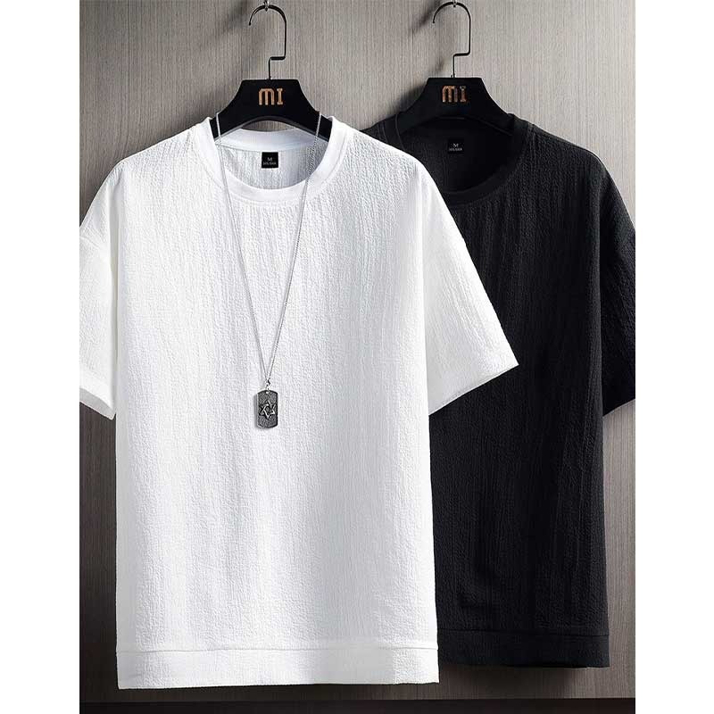 ゆるいカジュアルな薄い純色半袖tシャツ男性夏の白い半袖tシャツのシャツに服のトレンドがある