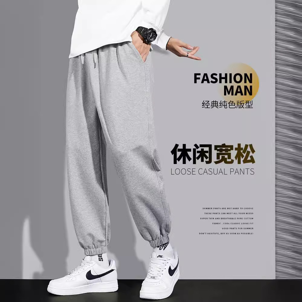 新型カジュアルパンツ男性春秋百合軽熟高街ゆるいストレートパンツ潮牌純色運動長ズボン男