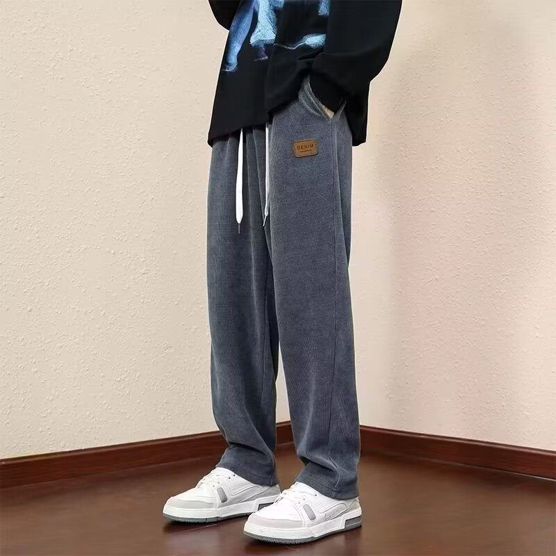 カジュアルパンツ男性春ストレートペンダント感ゆるい潮牌百合衛ズボンコーデュロイ引きひも運動ズボン男