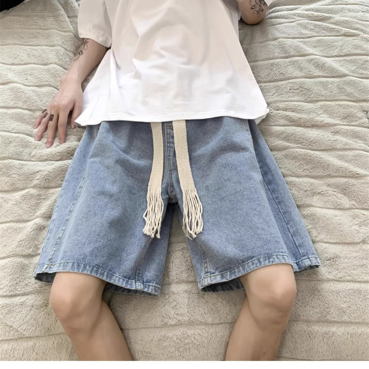 アメリカのレトロなデニムのショートパンツの男性の夏のデザイン感が小さいです。
