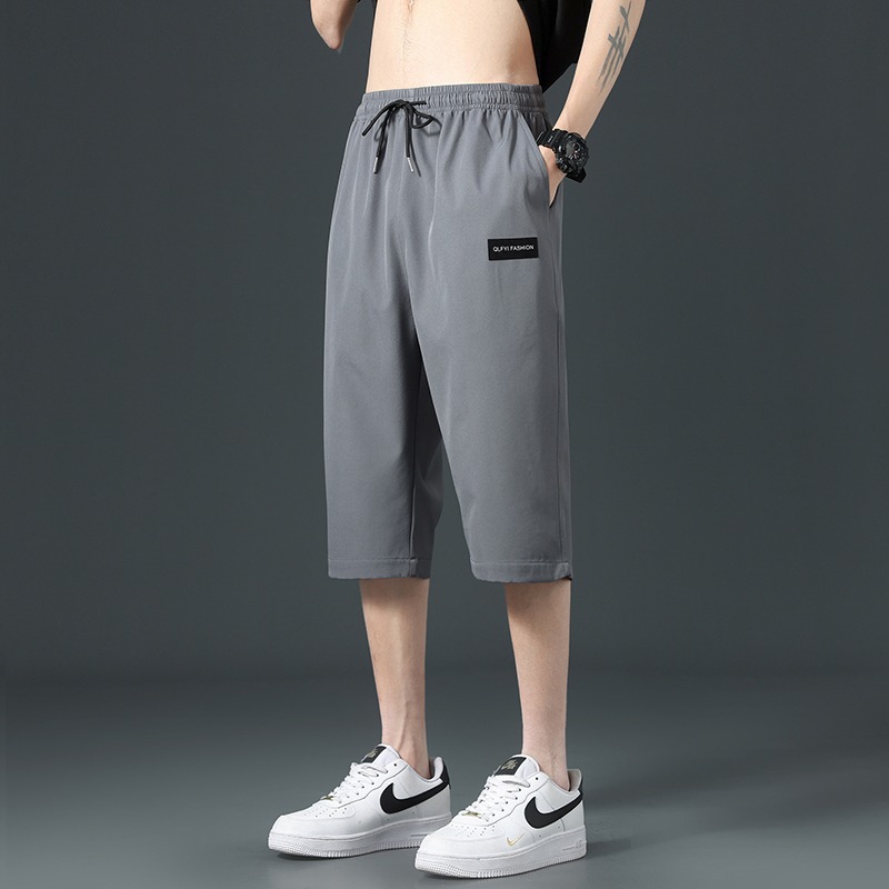 七分ズボンの男性の半ズボンの夏の薄いタイプの氷糸の潮のブランドの潮流の速干のごろつきのかっこいい側のレジャーの運動の中でズボン