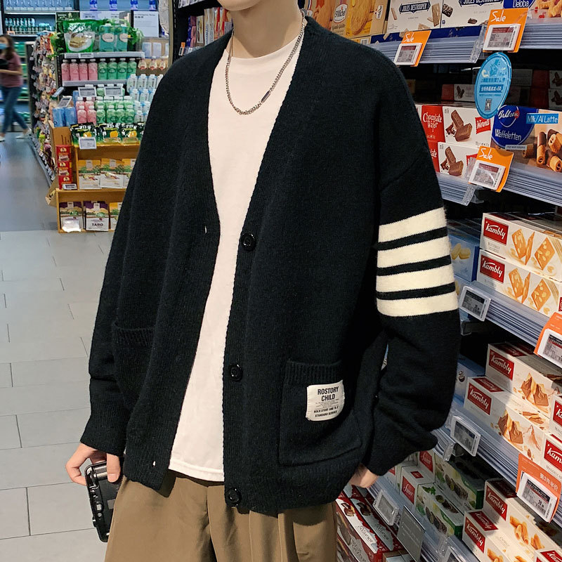 学院風のカーディガンのセーターのコートの男性の秋の韓国版の潮流のins高街の百合のゆったりしているニットのジャケット