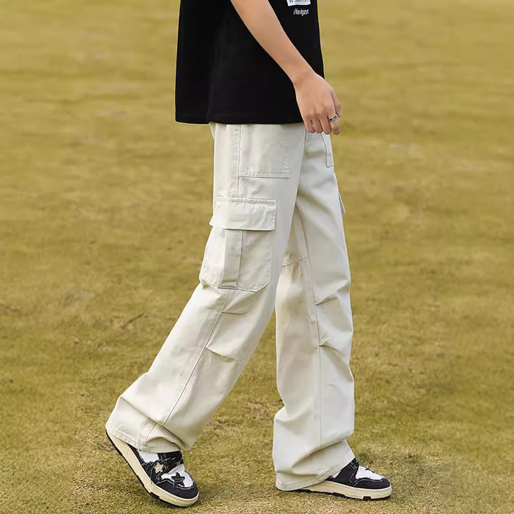 夏の薄いタイプの青少年のごろつきのかっこいいまっすぐな筒の工装のズボンの日本の復古の多ポケットのカジュアルなズボンの春の夏の薄いタイプ