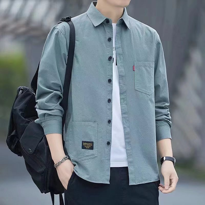 新商品のゆったりとしたカジュアルなパーマなしのゆったりしたシャツ男性長袖のカジュアルなシャツの春と秋のコートの男性服のモデル