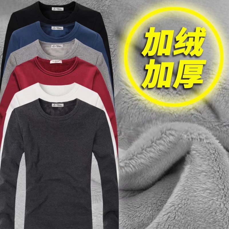 冬の保温下着男性の上着にベルベットをつけて保温長袖tシャツvネックを厚くすると、中に身を修める秋の服を着ることができる