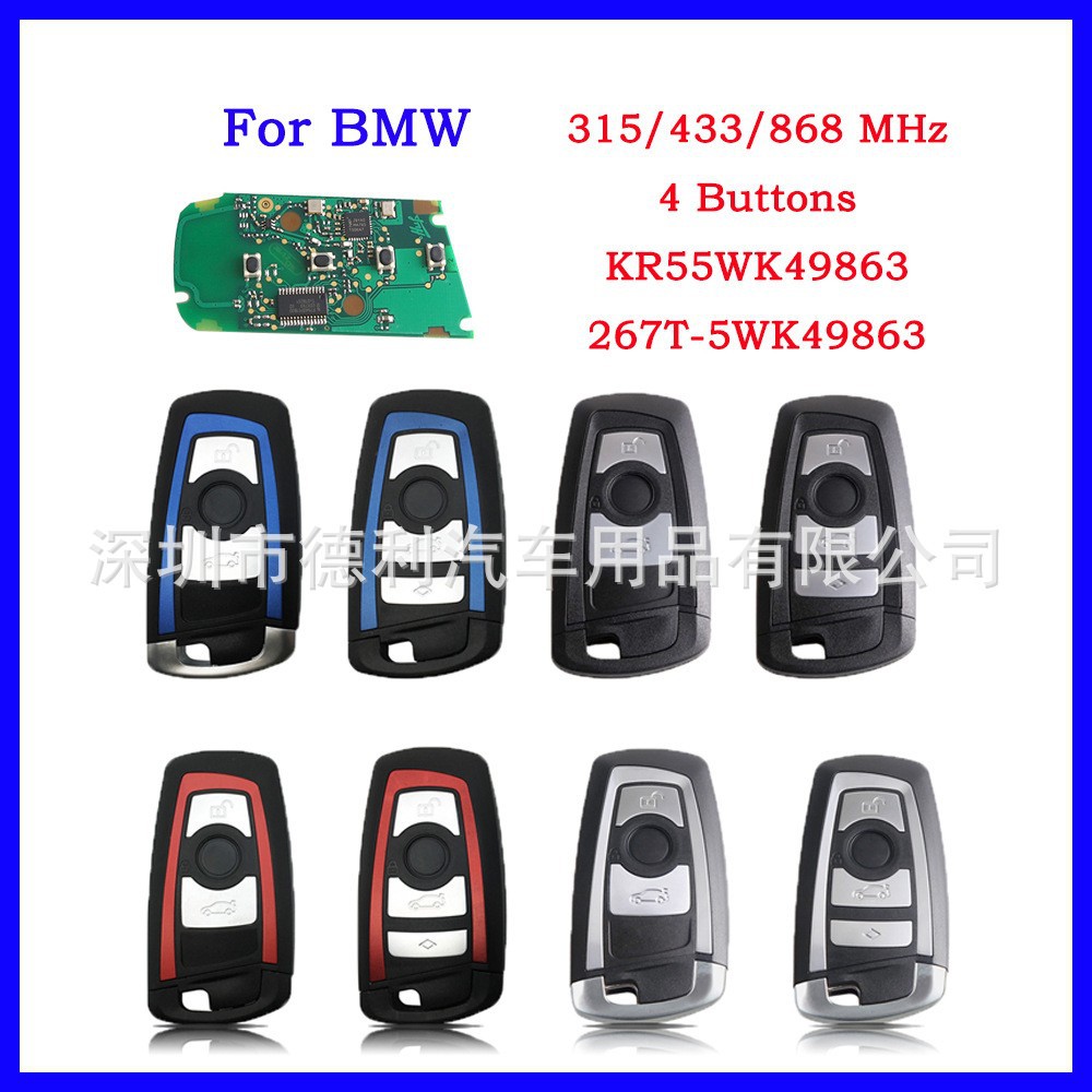 4ボタンBMWリモートカーキー315-433-868mhz KR55WK49863 7945チップに適しています。