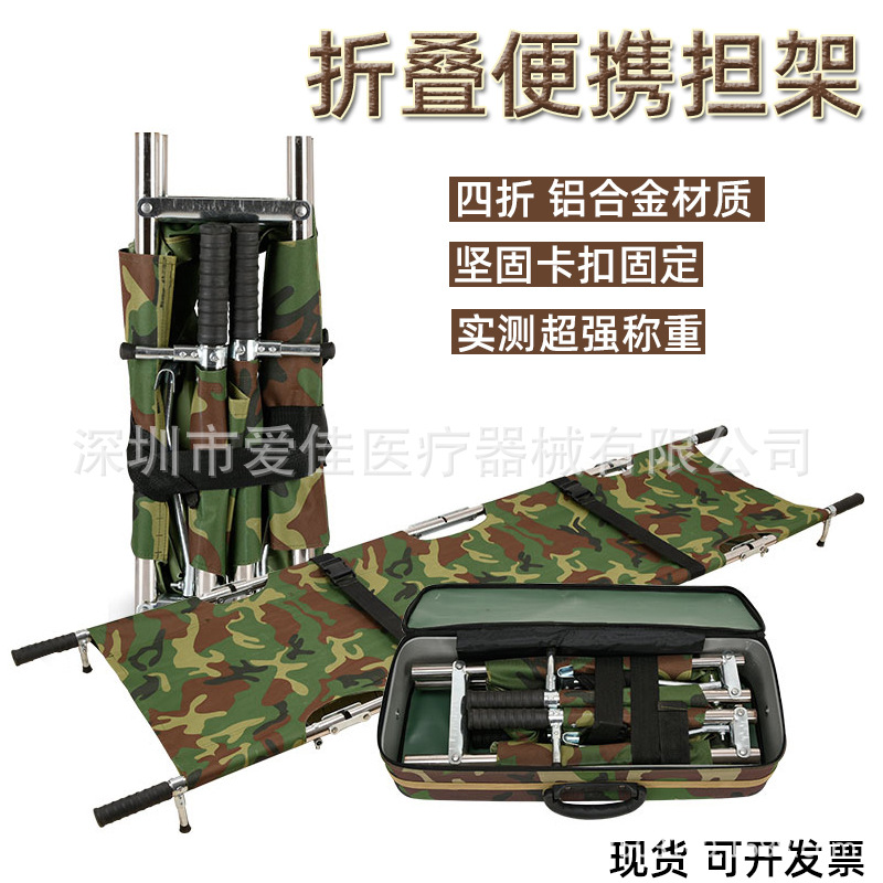 ポータブル四つ折りストレッチャー折り畳み式ステンレスアルミ合金厚手ストレッチャー簡易消防救急