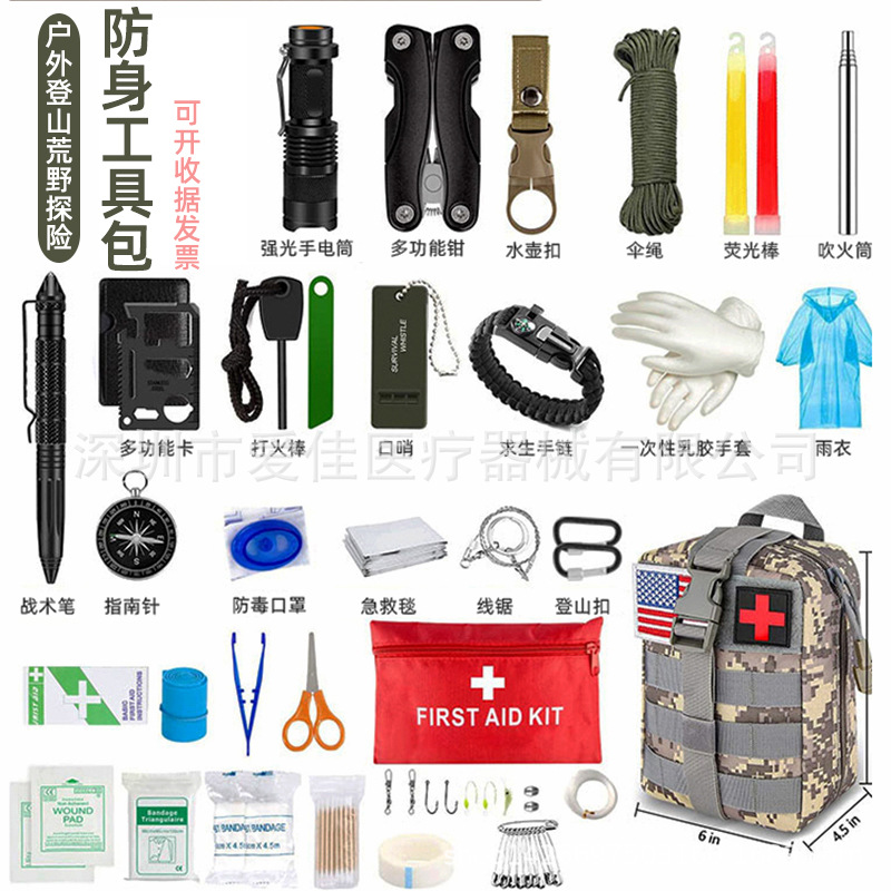 アウトドア登山探検救急戦術バッグサバイバルツールセット多機能野外サバイバルsos用品
