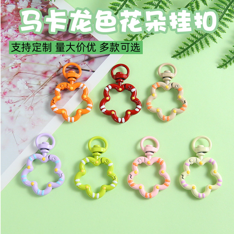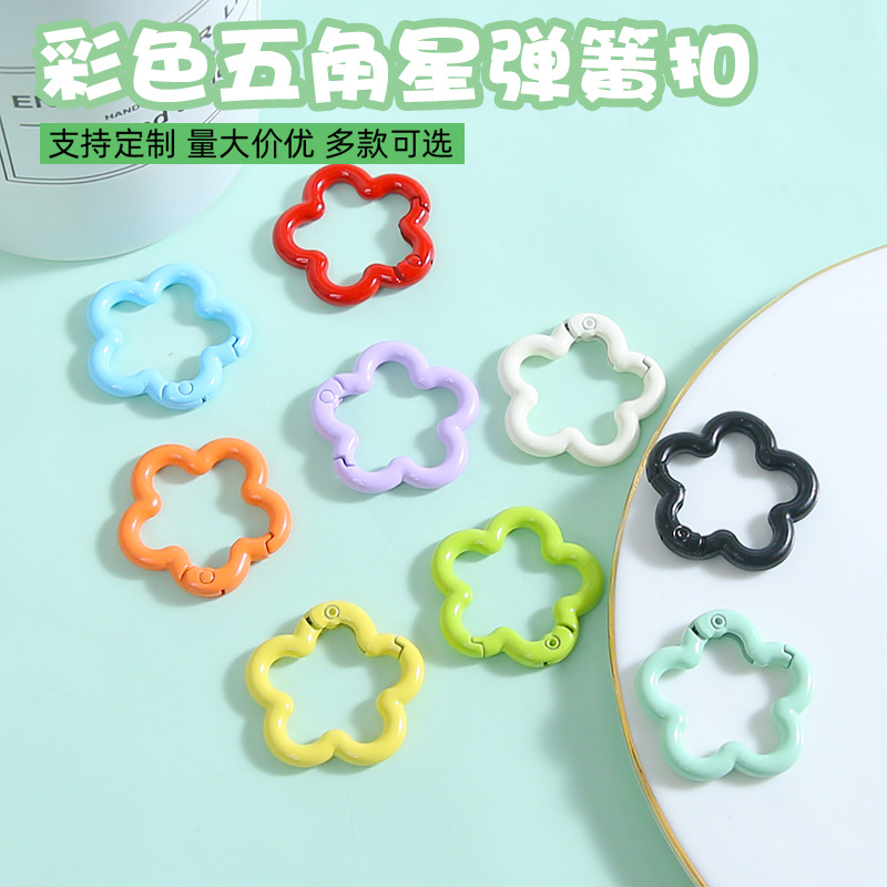 塗装カラースプリングバックル円形開口五弁花輪スプリングリングキーホルダーDIY部品合金接続リング