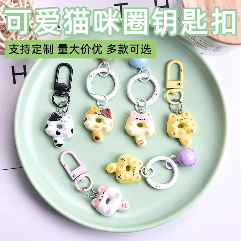 クリエイティブかわいいアニメドーナツ猫キーホルダーシャム猫KT ins風キーホルダーかばんイヤホンストラップ