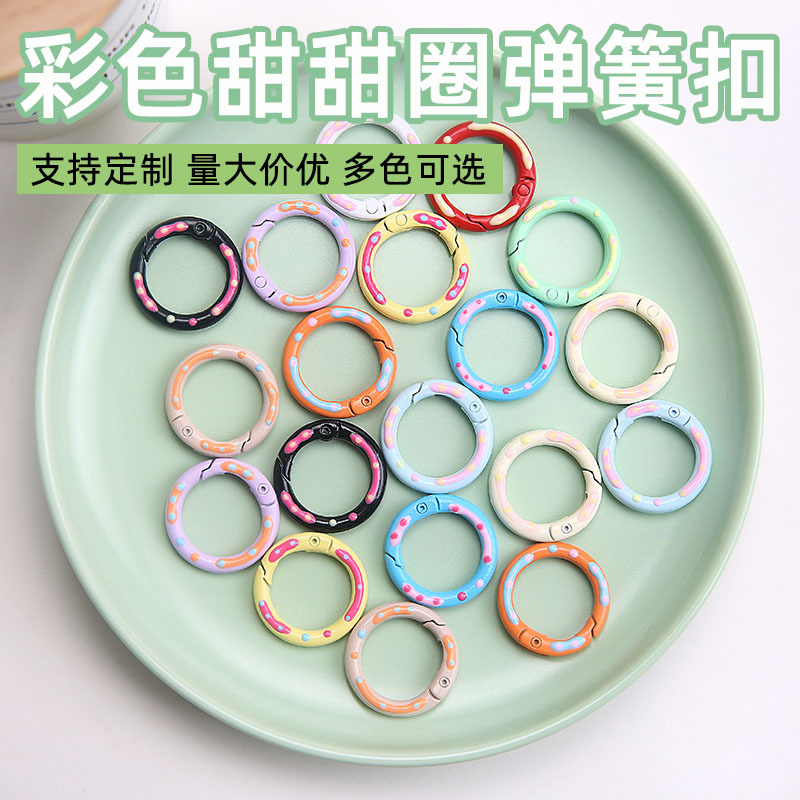 ペイントカラードーナツスプリングバックルラウンドオープンリング金属漫画diyアクセサリーアクセサリー装飾クリエイティブバッチ