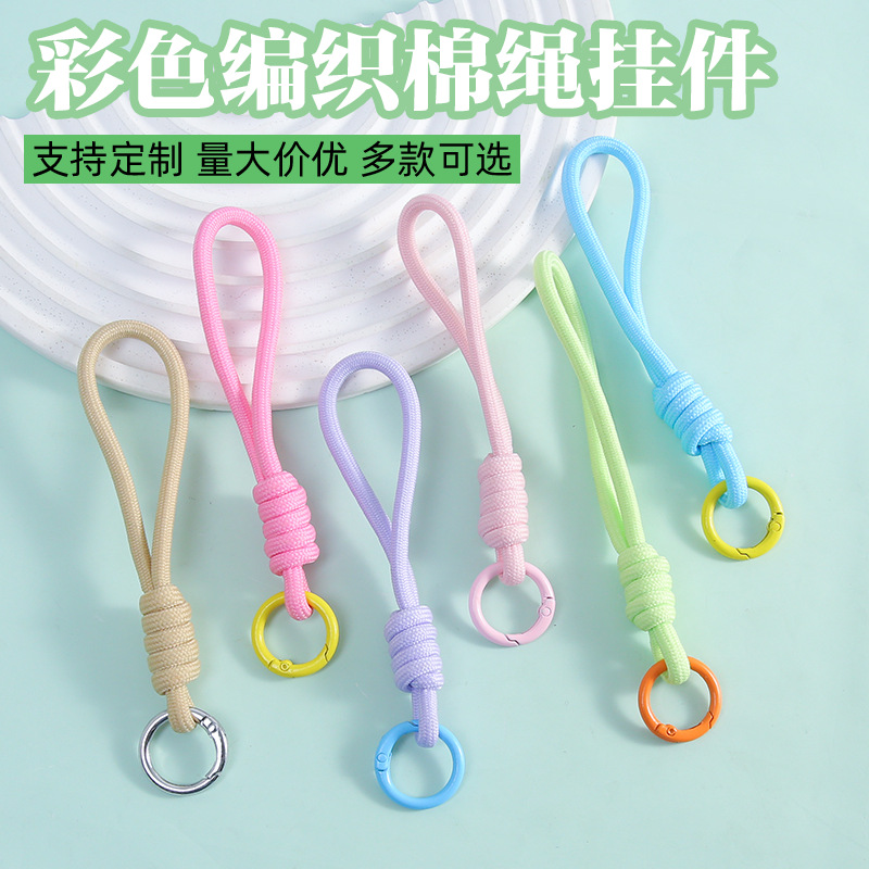 カラーの手編みの綿の縄のスプリングはアクセサリーのdiyのキーホルダーを掛けます。