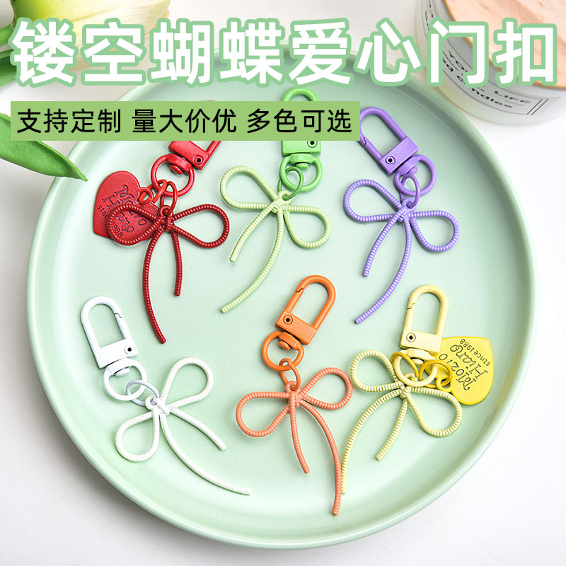 キャンディー色の合金のデザインの精巧な王女は透かし彫りの蝶結びの愛の英文字のキーホルダーを持っています。