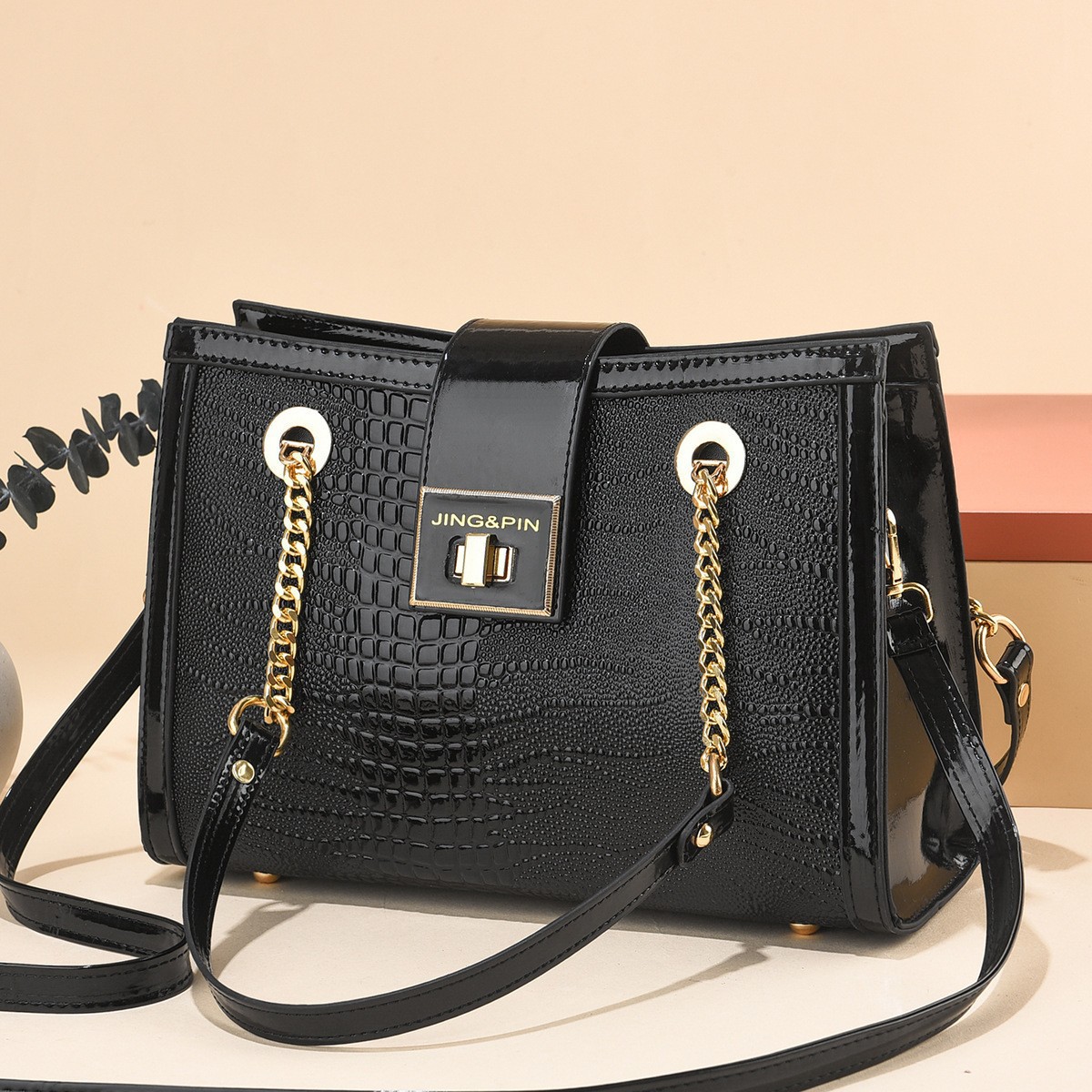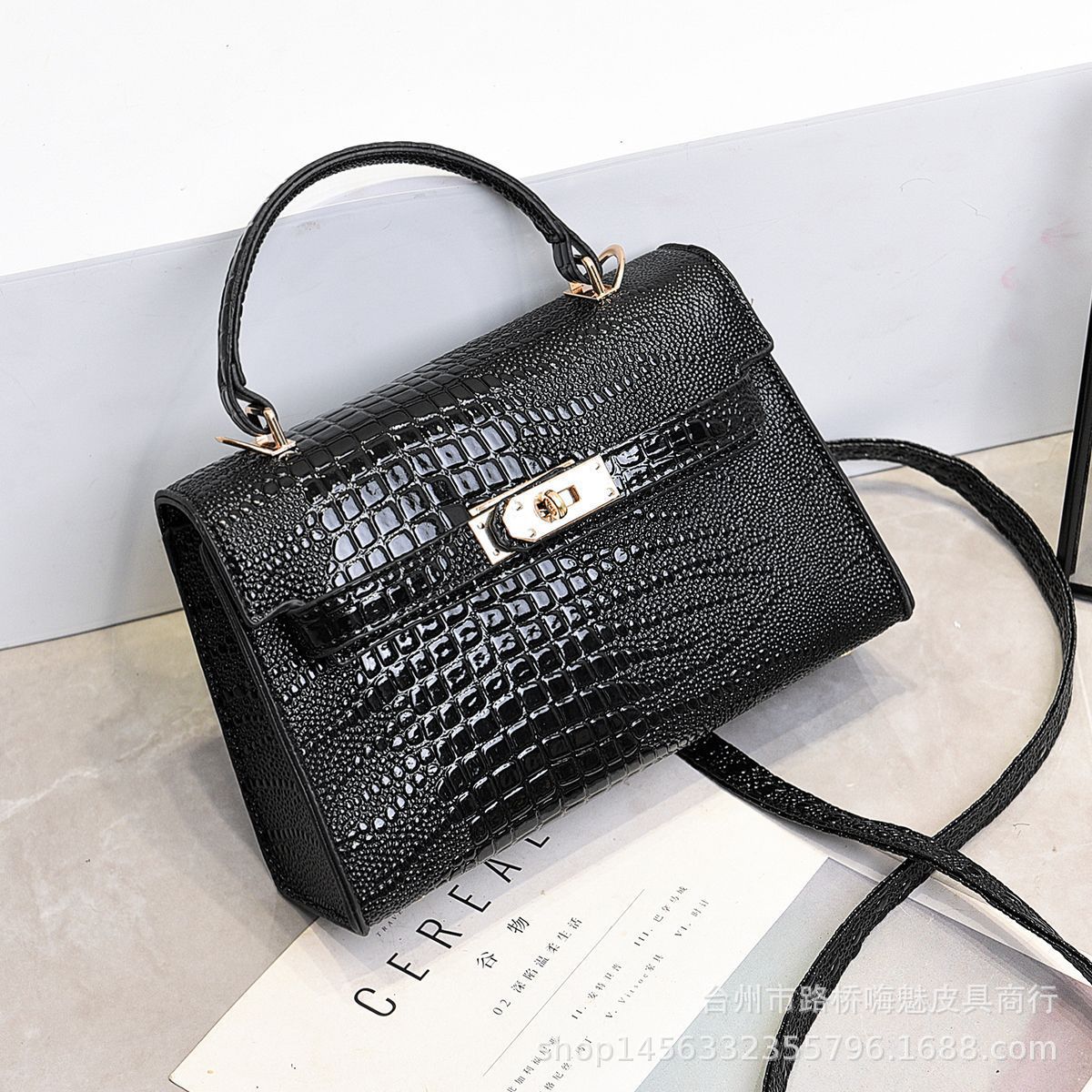2023春夏新作ワニ柄ケリーバッグフランス風質感ロックハンドバッグファッション百合シングルショルダーバッグ