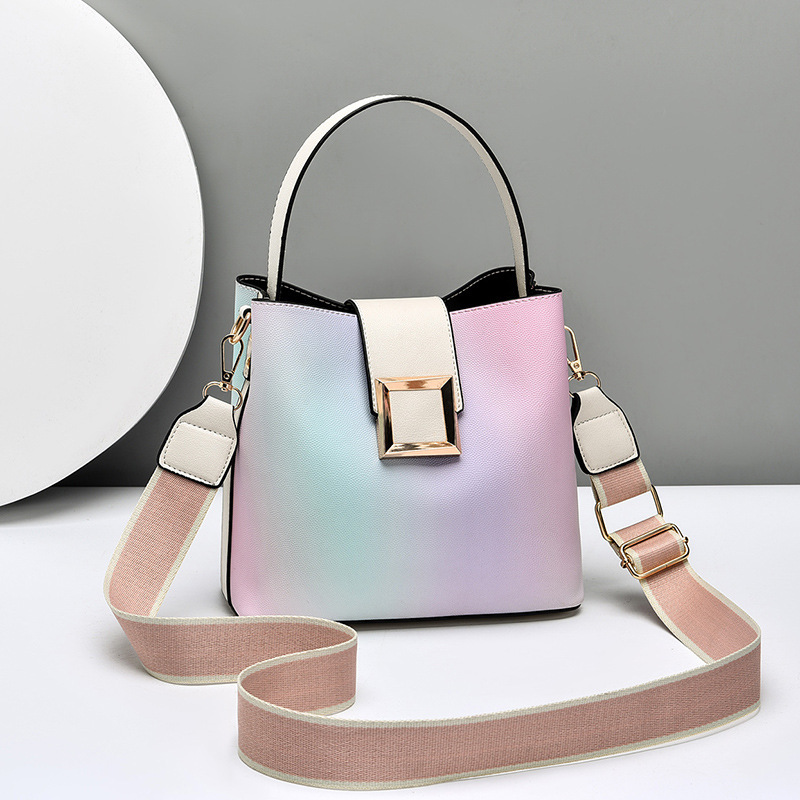 グラデーション色バケツバッグ女性2022新型ファッションネット赤シングル肩手提げショルダーバッグ洋気大容量女性バッグ