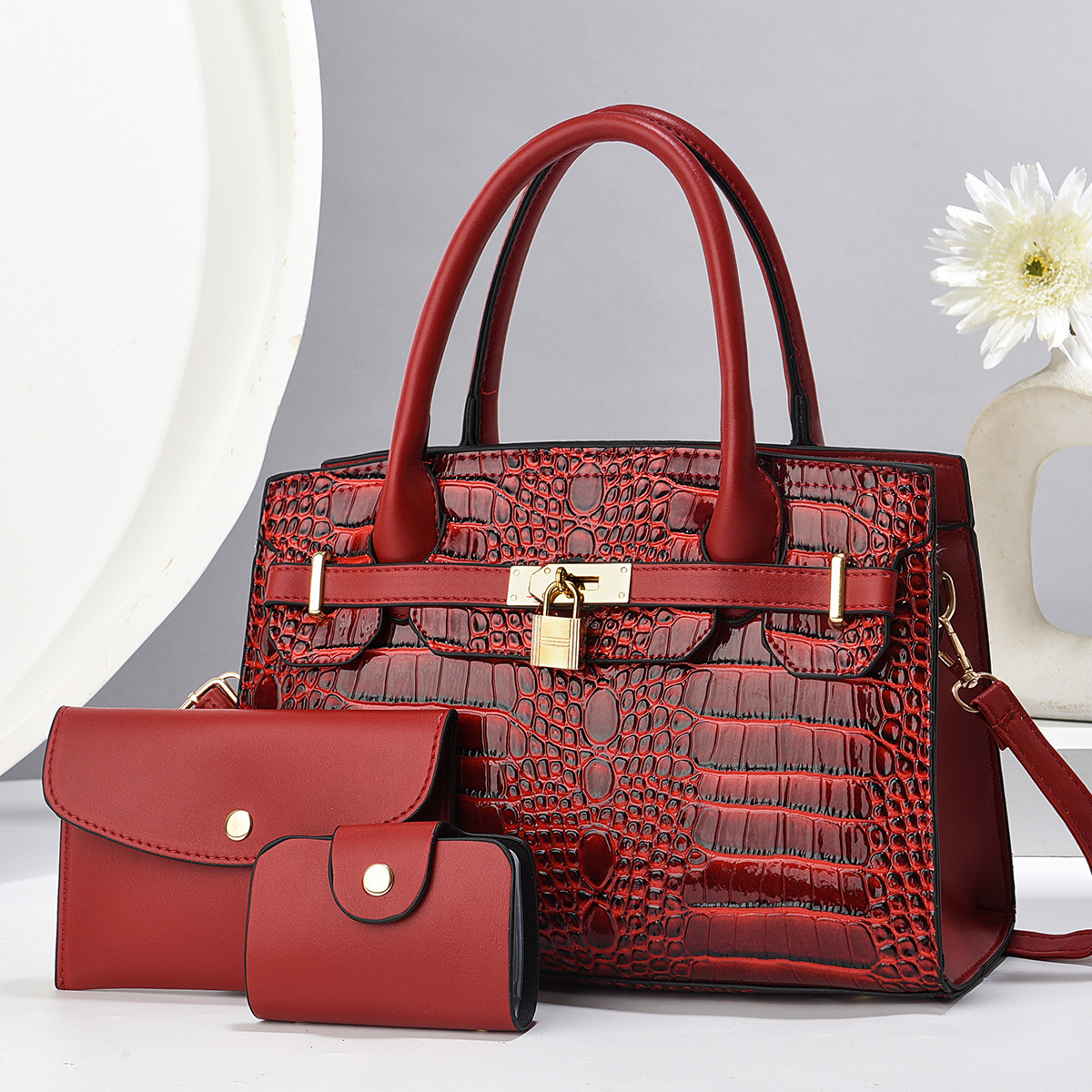 2024新型三点セットワニ柄ハンドバッグ対外貿易バッグ女性大容量欧米シングルショルダーバッグ
