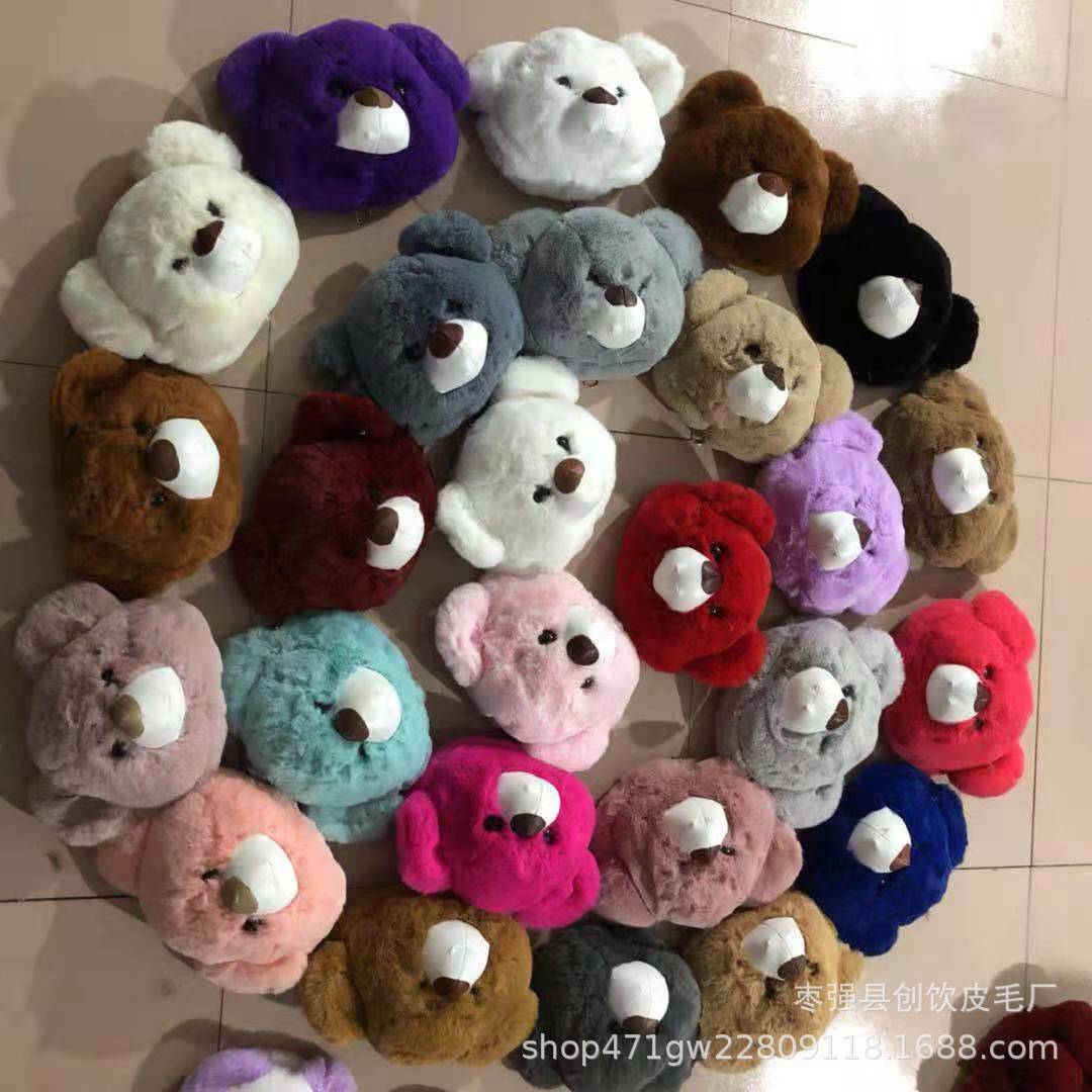 ファッションのぬいぐるみの熊の頭のカバンはラッコのウサギの毛の熊の頭のカバンをまねます。