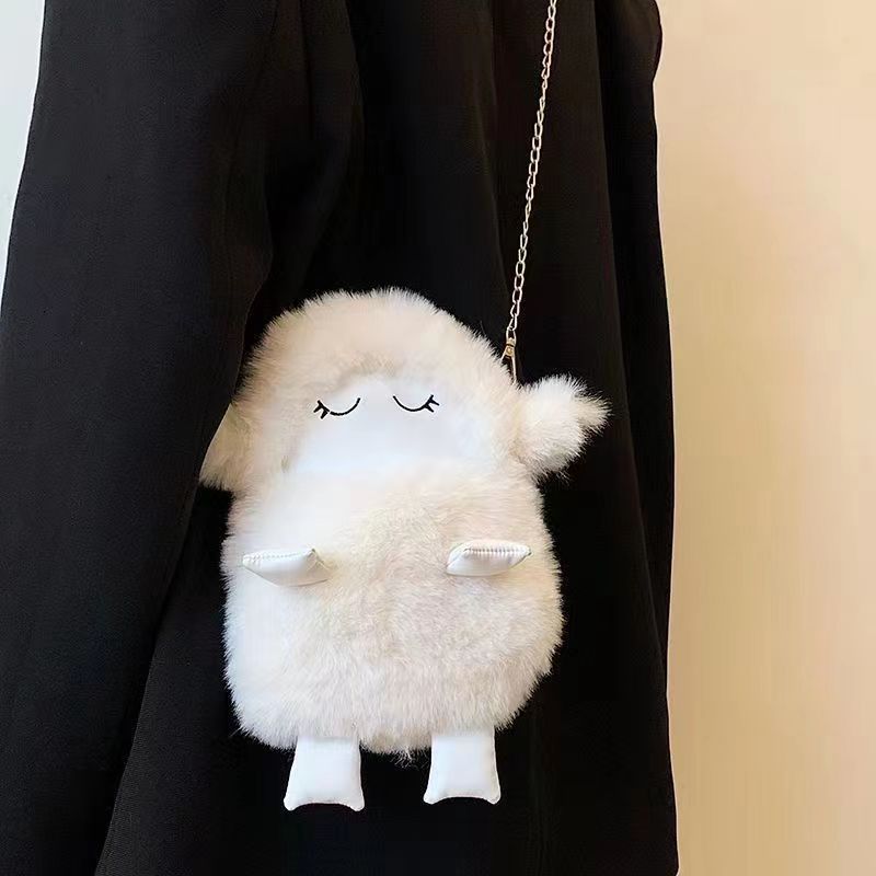 かわいい小さい包みの女性の2023新型のネットの赤いぬいぐるみの公の子は毛の携帯電話の包みのチェーンを包んで斜めに小さい羊の包みにまたがります。