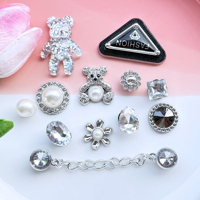 洞靴アクセサリー靴花手作りDIY装飾アニメかわいい立体チェーン熊部品取り外し可能靴ボタン