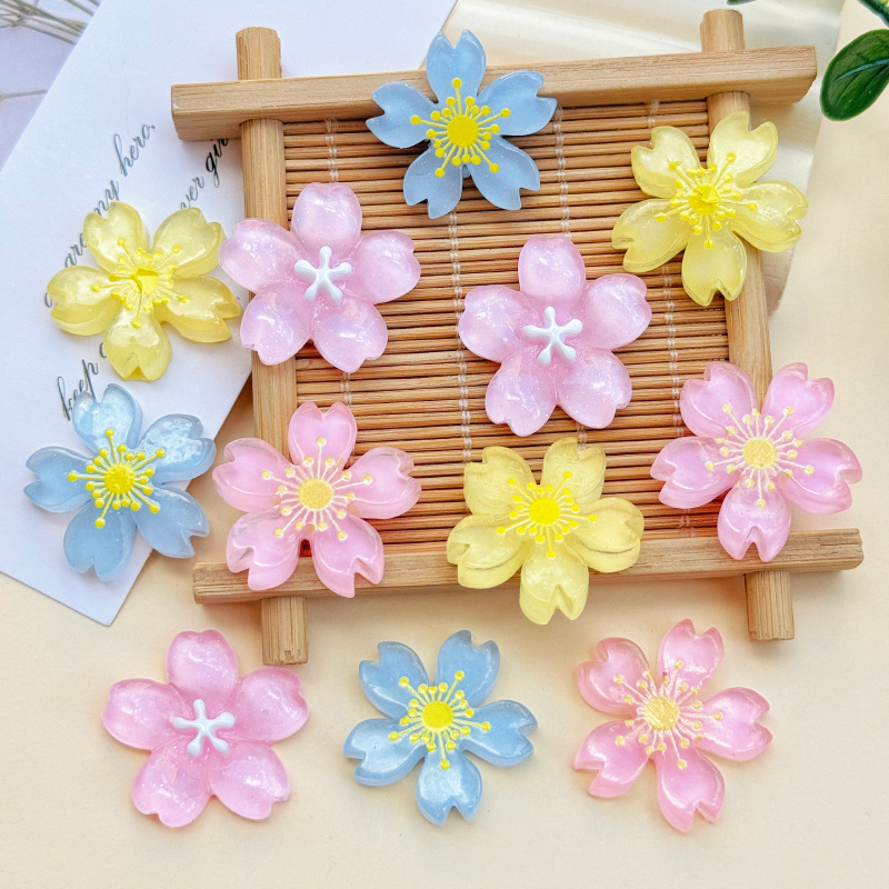 氷透金水晶五弁花桜樹脂diyアクセサリー携帯ケース洞靴シール髪飾り材料