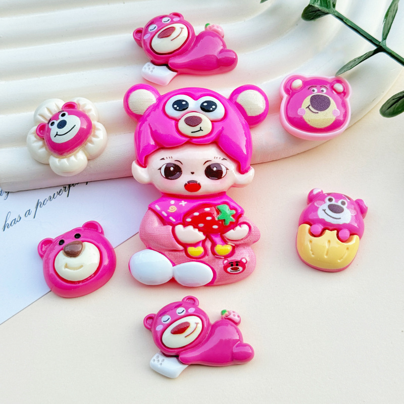 漫画いたずら女の子イチゴベアシリーズ樹脂diyアクセサリー携帯ケース洞靴パッチ材料