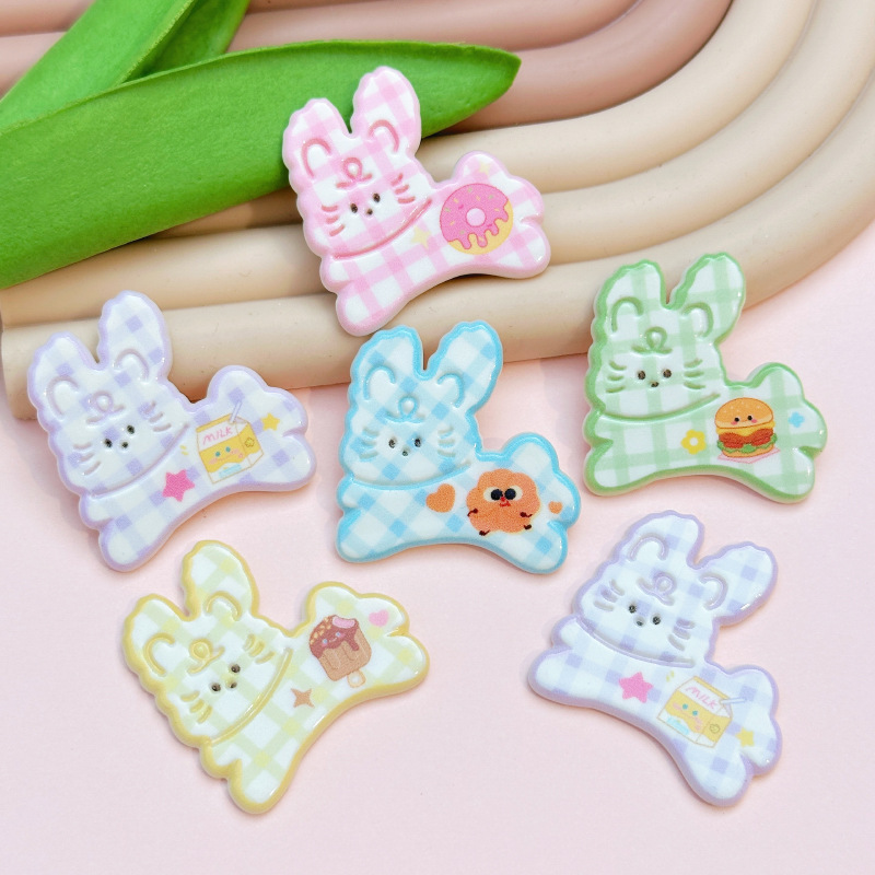 格子縞カラーウサギアクリルdiyアクセサリー携帯ケース靴ボタン靴花パッチヘアクリップ髪飾り材料