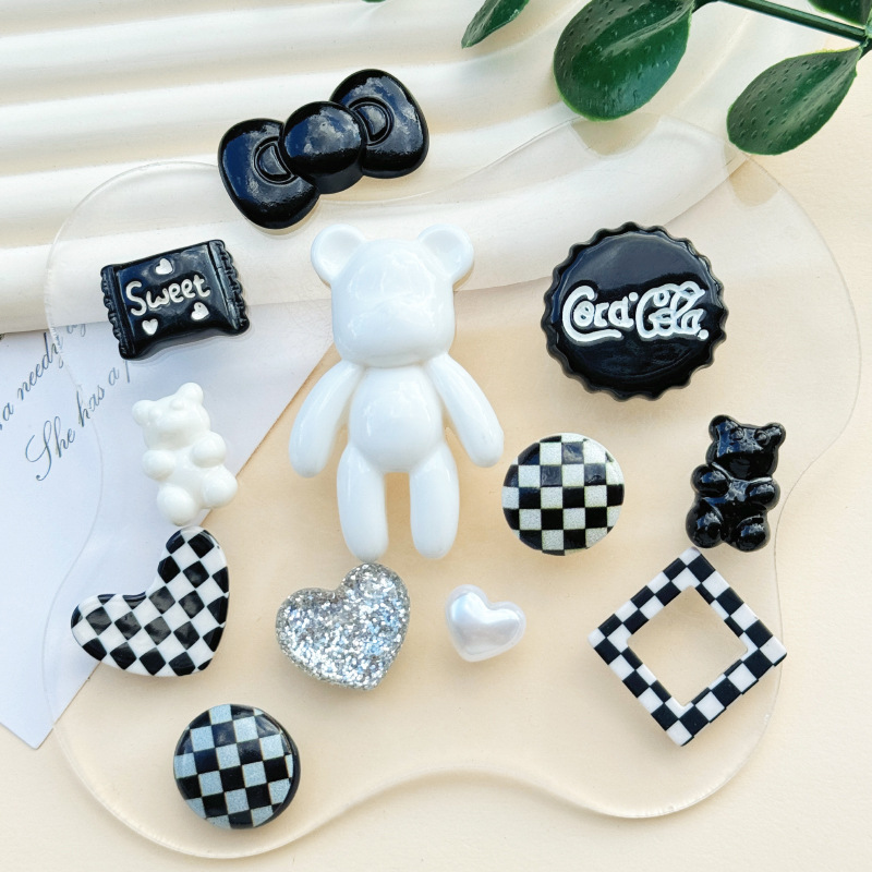 白い暴力熊ボタンシリーズ樹脂diyアクセサリー携帯電話ケース洞靴シール髪飾り材料