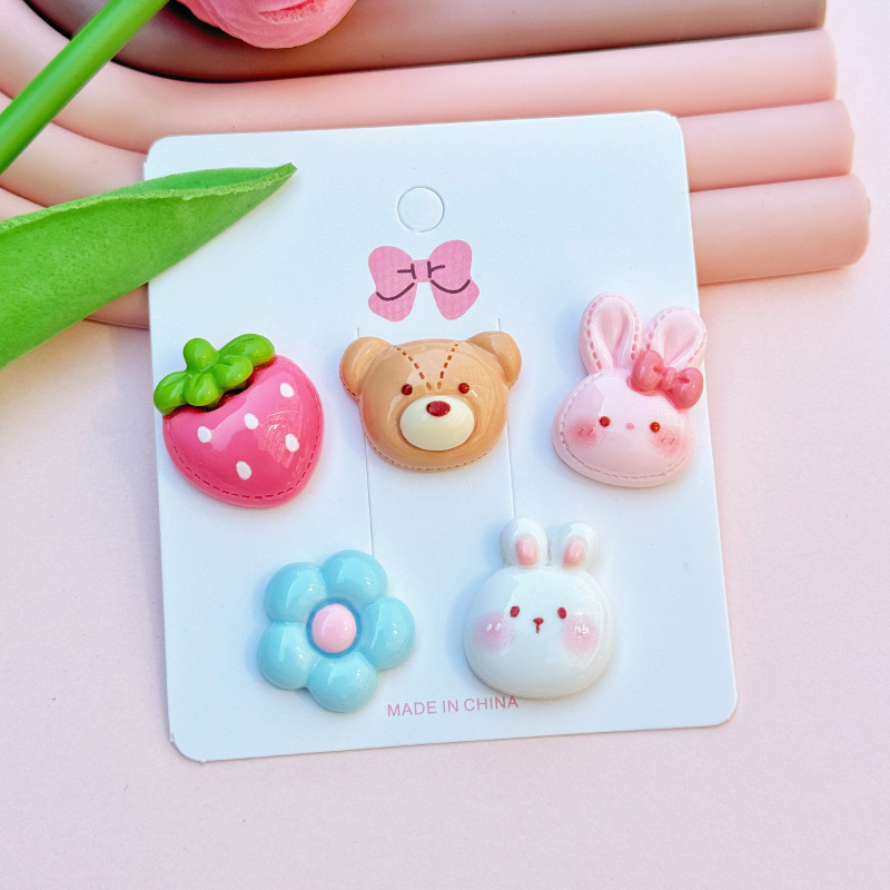 明るい顔のイチゴのウサギの熊の樹脂のdiyのアクセサリの携帯の携帯電話の穴の靴のパッチのヘアピンの髪飾りの材料