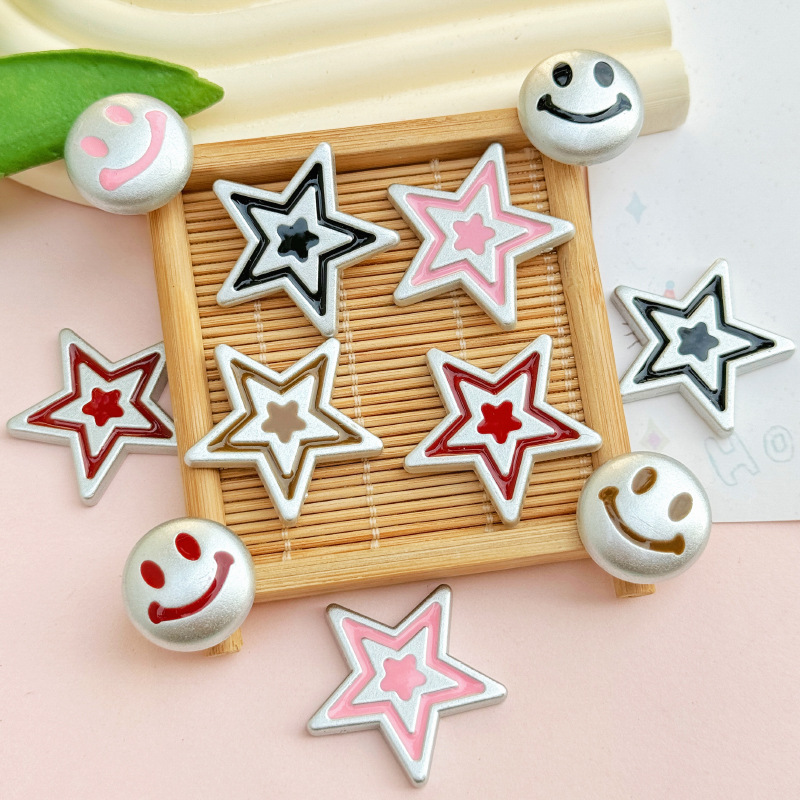 メッキ笑顔五角星アクリルdiyアクセサリー携帯ケース洞靴パッチヘアクリップ髪飾り材料